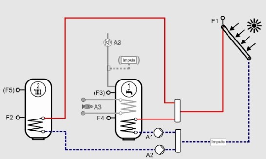 Reglarea modulelor solare cu doua rezervoare - 2 pompe de incarcare