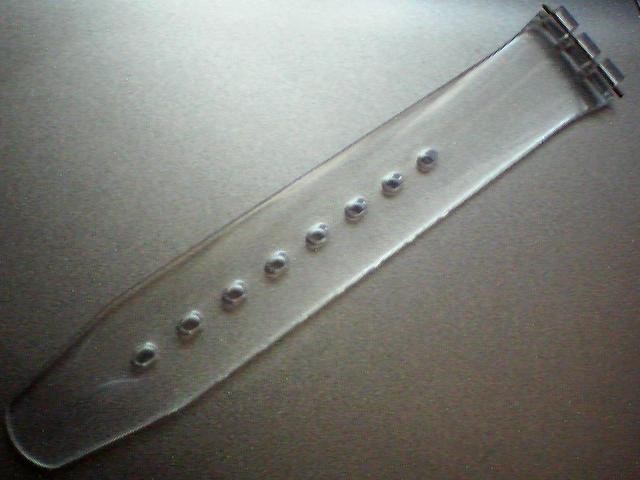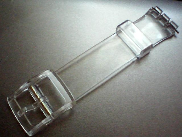 curea swatch plastic de 17mm latime, transparenta si alb-transparenta.-Tel.0764.533.165.