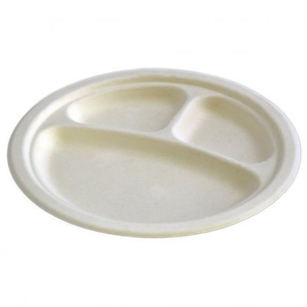 Farfurii plate unica folosinta biodegradabile 25cm, 3 compartimente, 50 buc/set