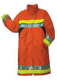 Geaca pentru pompieri, cu rezistenta impotriva flacarilor si a riscurilor asociate.Protectie impotriva contactului direct cu flacarile, caldura convectiva si radianta, a incarcarilor electrostatice.Material: exterior Nomex Confort, spate reflectorizant din Nomex Silhoflec, interior membrana respiranta impermeabila + fibra de aramida impermeabila + PU rezistent la flacari.Fermoar frontal cu fanta si capsa, prevazuta cu velcro ignifug.Guler inalt, maneci confortabile si mansete elastice.Patru buz