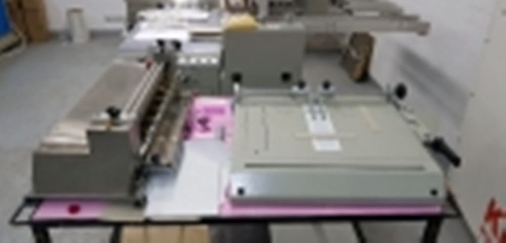 Caracteristici: Masina de uns la cald/rece cu reglaje pentru grosime adeziv, temperatura, grosime material si viteza de lucru plus Masina de pozitionat/format coperta/ scoarta cu functii de pozitionare, taiere colt hartie, intoarcere margine, presare.