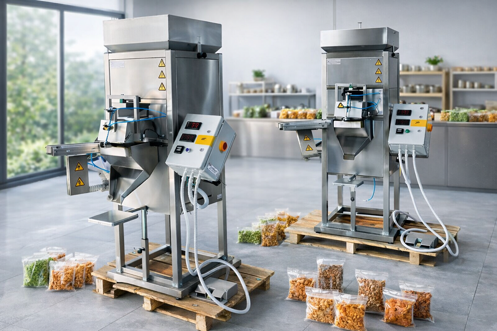 Procesul de ambalare se realizeaza cu ajutorul unui dozator modern, prevazut cu sistem de cantarire electronica si lipire pneumatica a pungilor. Dozarea este efectuata prin vibratie, asigurand o distributie uniforma si un control optim al cantitatii ambalate. Produsele sunt ambalate in pungi de plastic preformate, ceea ce contribuie la un flux de lucru rapid si constant.