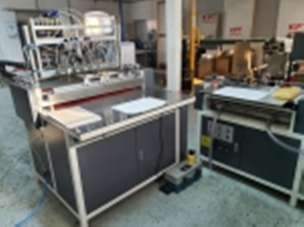 Caracteristici: Masina semaiutomata de produs scoarte, coperti tari, produse caserate. Ungere cu clei cald, alimentare manuala hartie, pozitionare manuala hartie, alimentare automata carton ( 1-4 bucati de carton) rebordurarea automata. Viteza 3-5 produse / minut.