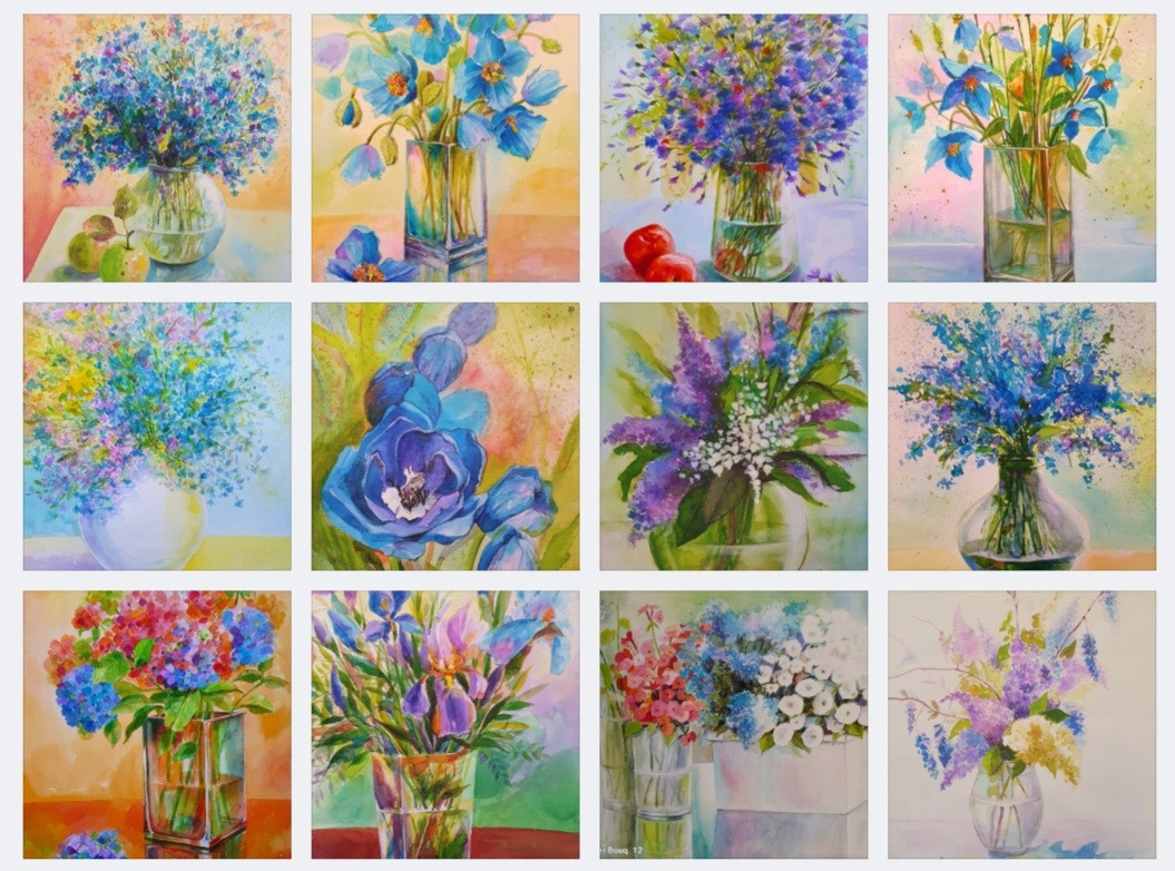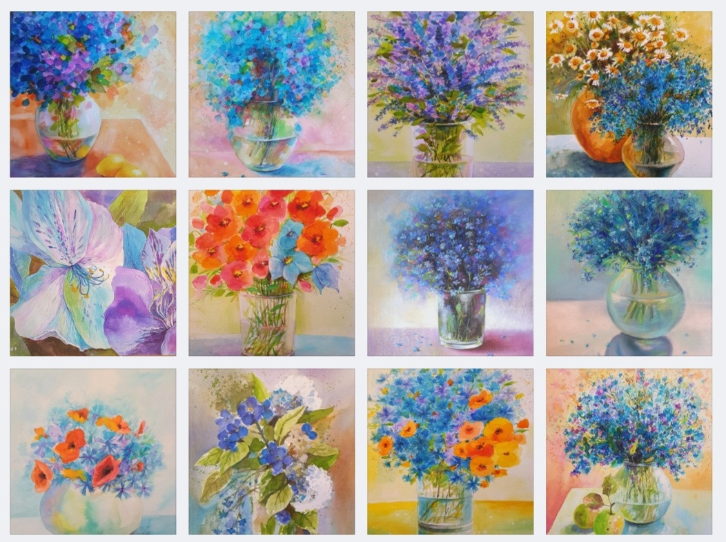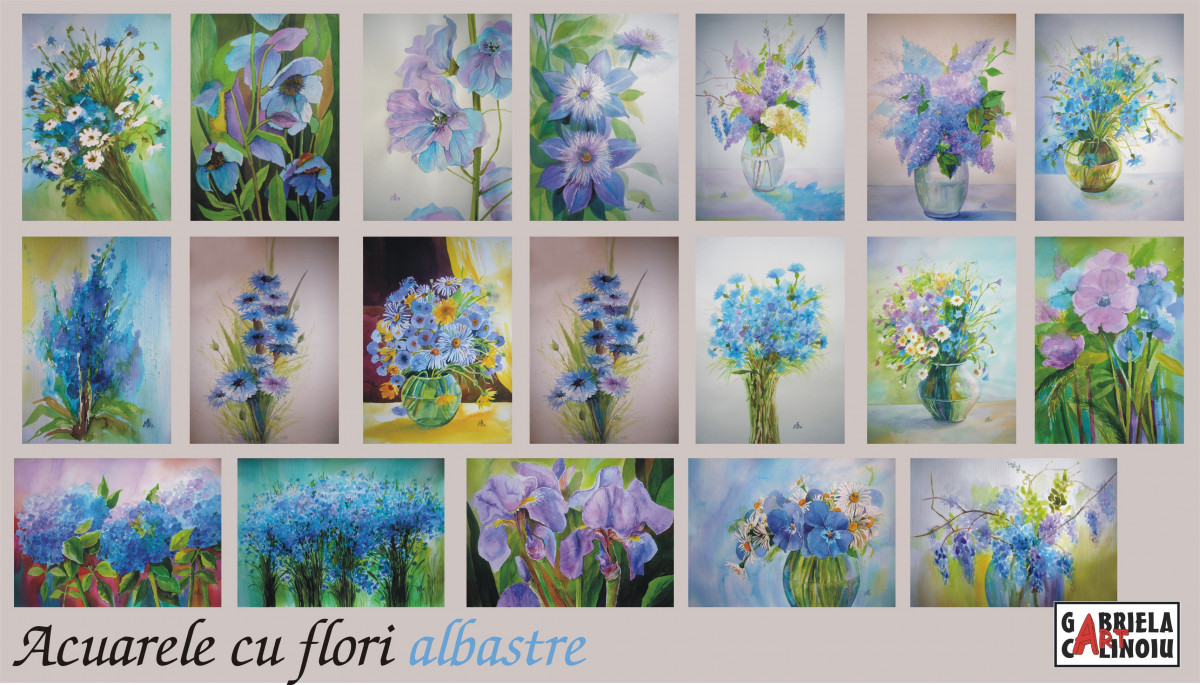 Picturi cu flori albastre,lucrari originale si unicate,pline de culoare.Tablourile sunt ideale pentru cadouri,pentru amenajarea oricarui tip de interior de la cel clasic la cel modern.