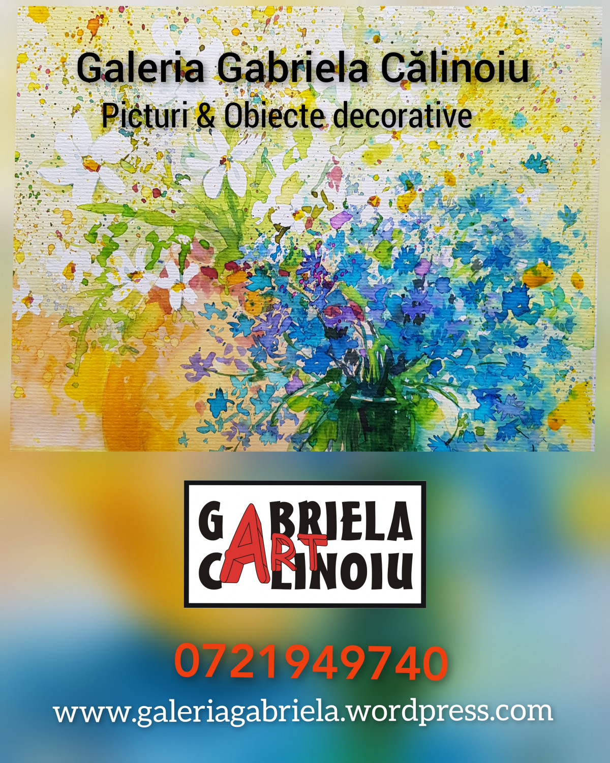 Tablouri cu peisaje sau flori, picturi abstracte, obiecte decorative, lucrari originale si unicate semnate de artistul plastic profesionist Gabriela Calinoiu, membra a Uniunii Artistilor Plastici din Romania.
