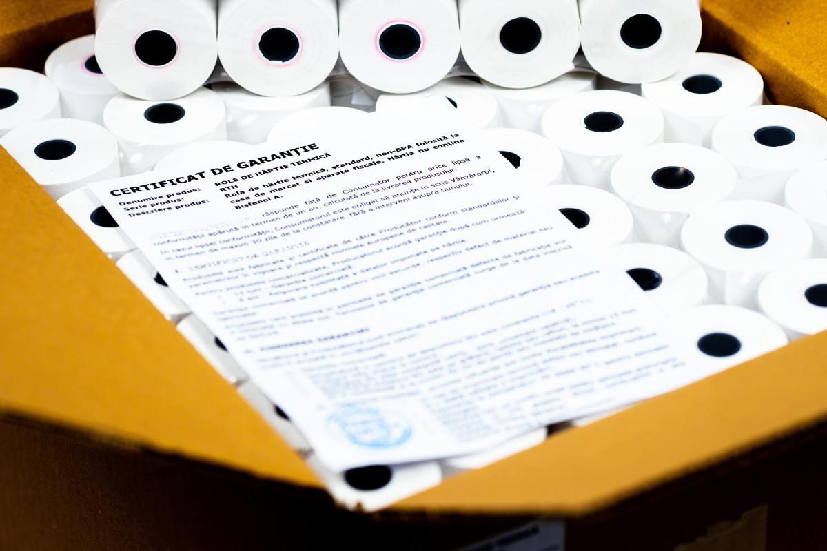 Hartie standard, non-BPA folosita la case de marcat si aparate fiscale, avand o imprimare buna. Produsul nu contine Bisphenol A.