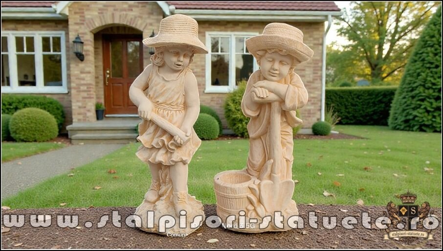 Set doua statuete gradinari, galben patinat, model S90.