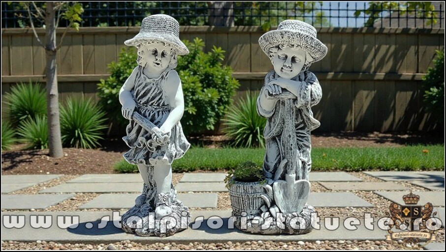 Set doua statuete gradinari, gri patinat, model S90.