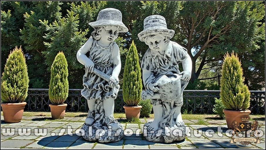 Set doua statuete gradinari, gri patinat, model S92.