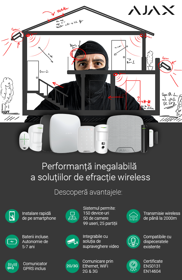 Ce facilitati va ofera un sistem de alarma? – armarea totala ( cand nu sunteti in imobil ) asigura protectia tuturor zonelor – armarea partiala ( cand sunteti in imobil ) asigura protectia anumitor zone – avertizarea telefonica daca se incearca intrarea prin efractie – avertizarea dispeceratelor firmelor de paza – memorie de evenimente in ordine cronologica – autonomie ridicata in cazul intreruperii alimentarii cu energie electrica