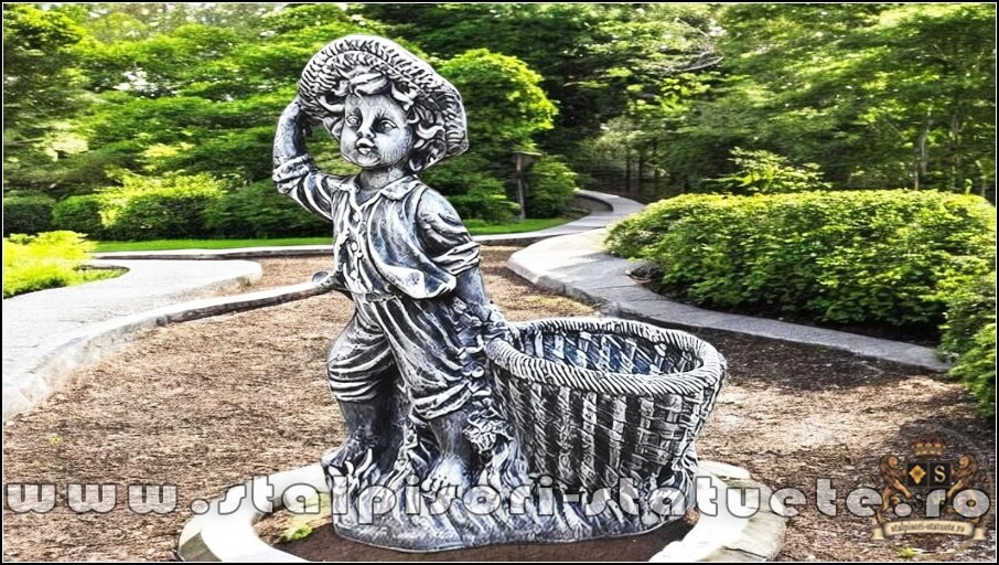 Statueta copil cu cosulet, din beton, model S19.