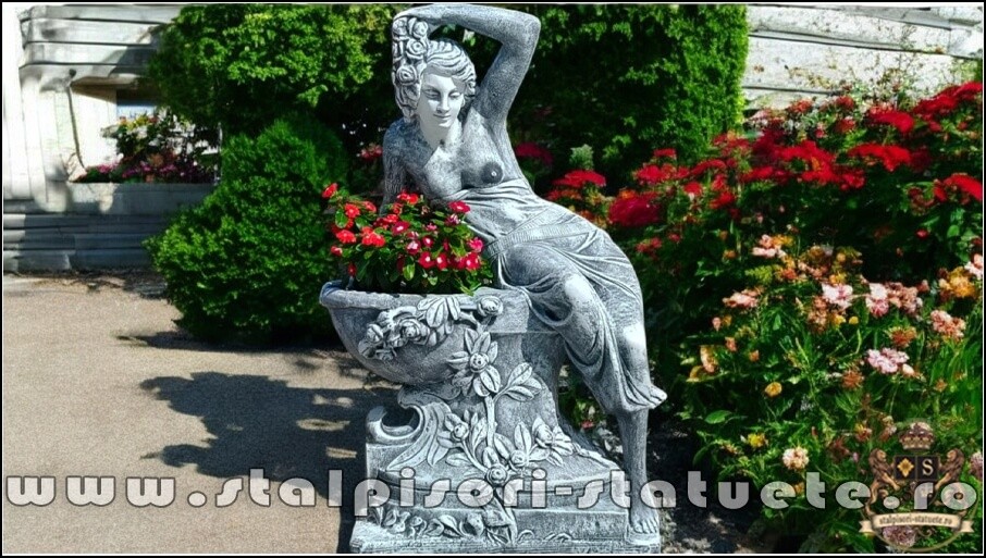 Statueta jardiniera flori, gri patinat, model J12.