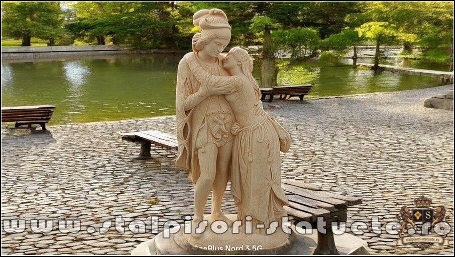 Statueta Romeo si Julieta, galben patinat, model S55.