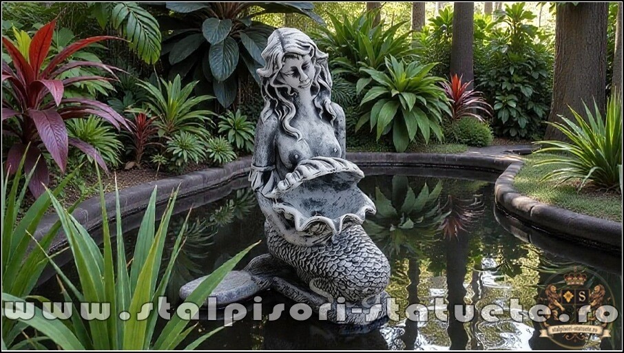 Statueta sirena cu scoica, gri patinat, model S49.