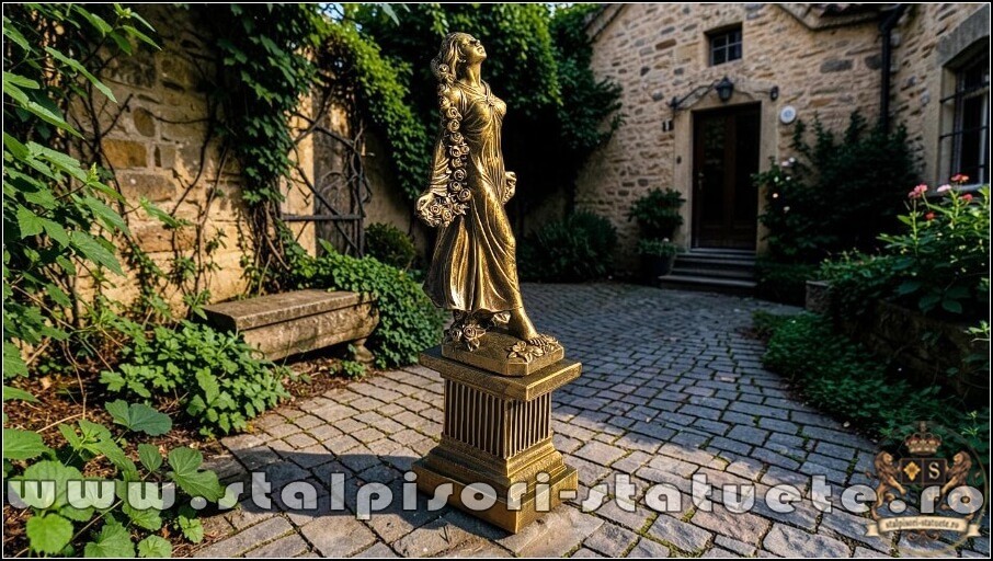 Statueta zeita Flora, auriu patinat, model S5.